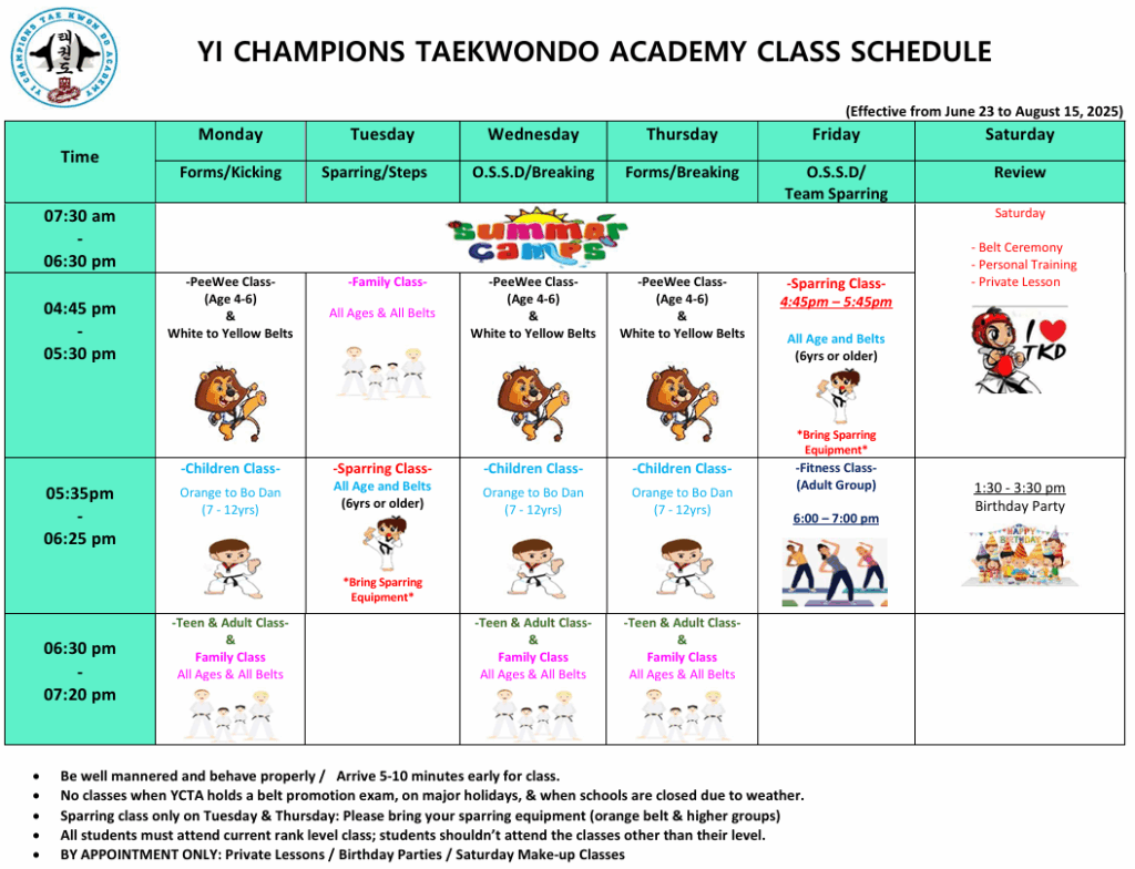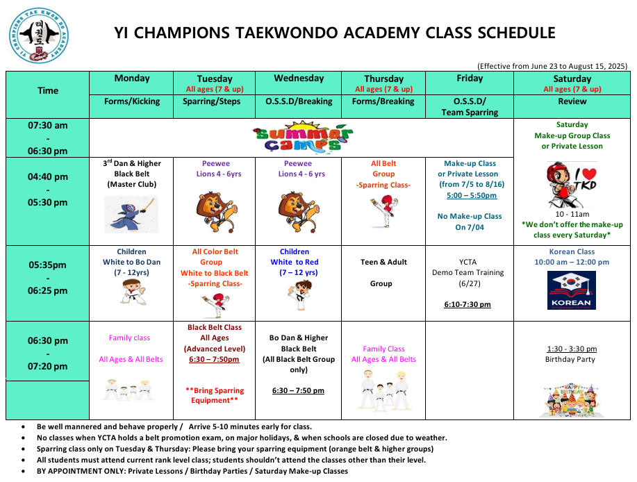 Regular Class Schedule will resume starting August 18, 2025.